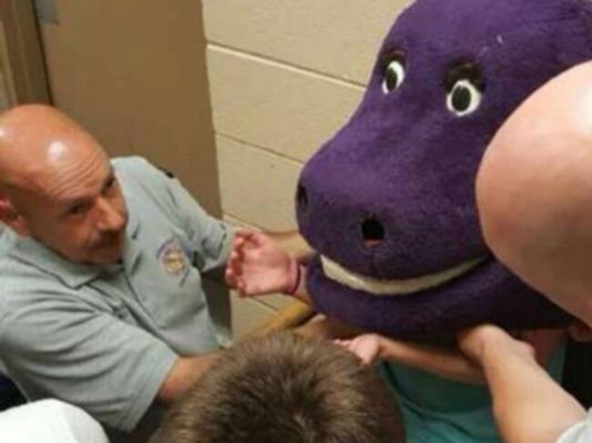 Todos alguna vez hicimos una travesura que nos dejó muchos problemas. Este fue el caso de una niña de 15 años llamada Darby Risner quien quedó atrapada en un disfraz de Barney cuando intentó jugar una broma al padre de una amiga con motivo de que había cumplido años hace unos días.