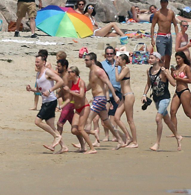 Con motivo de la celebración del 4 de julio (día de la Independencia en Estados Unidos) la pareja estaba besándose, riéndose y abrazándose junto a un grupo de amigos, conformado por Blake Lively y Ryan Reynolds; Este Haim, Gigi Hadid, Karlie Kloss, Abigail Anderson y Ruby Rose.
