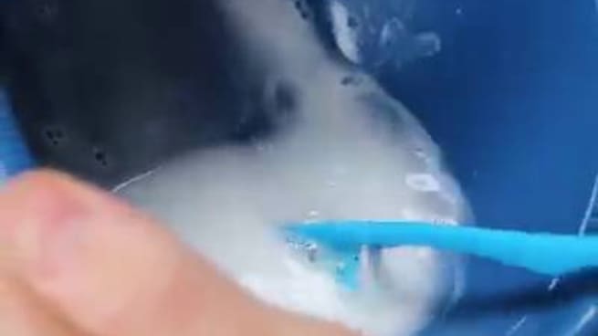 Con un cepillo de dientes, que ya no utilices, unta un poco de la mezcla y bátela sobre tus tenis (antes debes retirarle las agujetas).