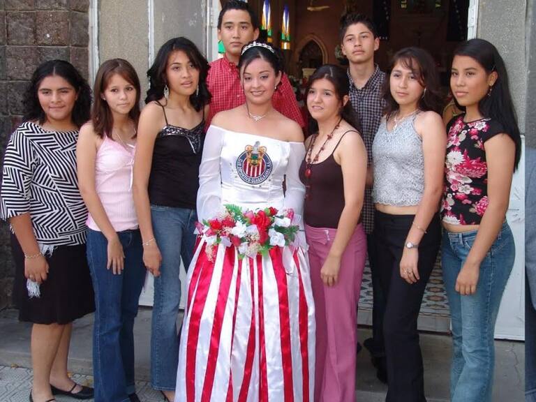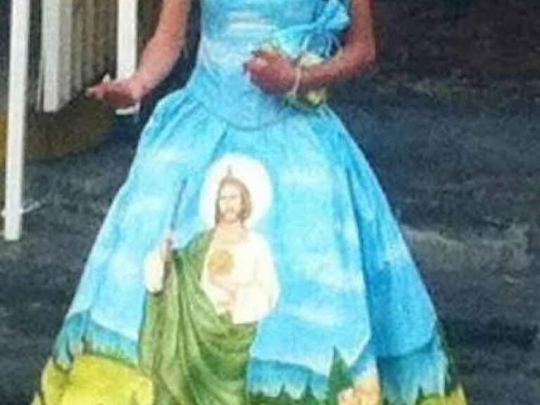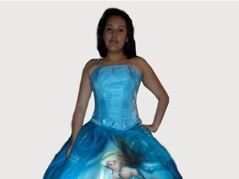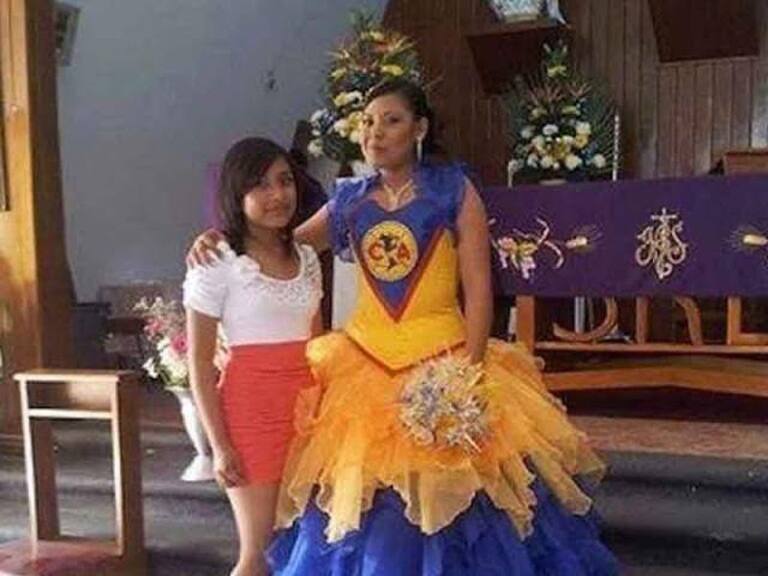 Esta última es la más importante debido a que debe escoger el vestido que se adapte a tus gustos y figura. Pero tal parece que estas niñas pensaron que sería buena idea pedir un vestido en forma de su equipo favorito o de alguna creencia.Eso sí es amor al deporte.