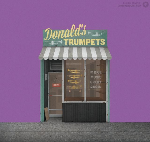 Sin duda, muchísimas personas estarían complacidas de que en vez de dedicarse a la política, Donald Trump vendiera trompetas en "Donald Trumpets".