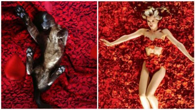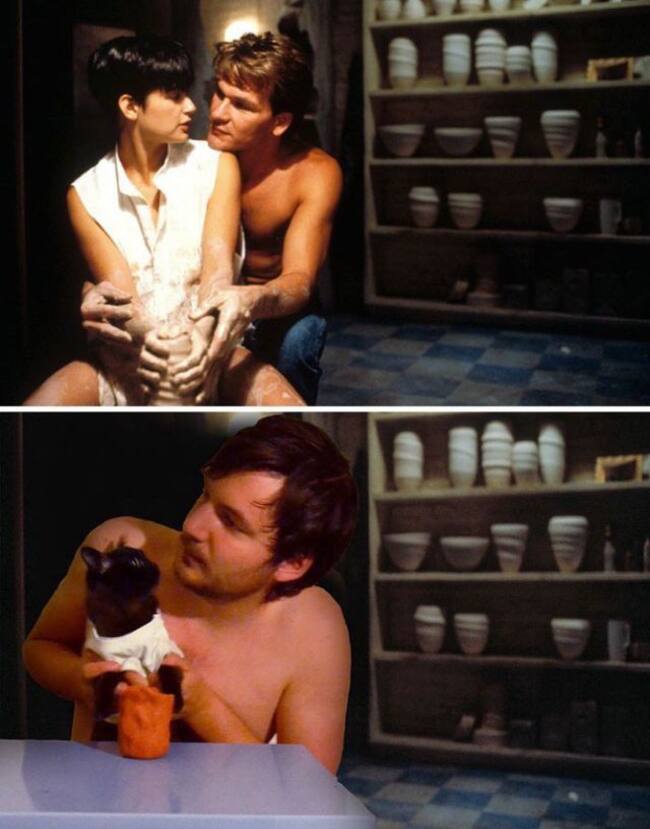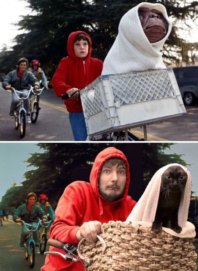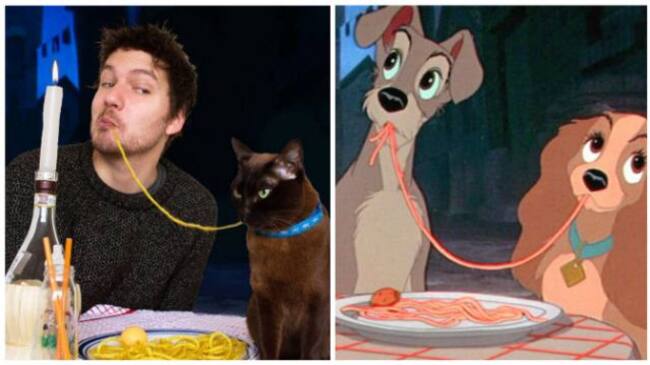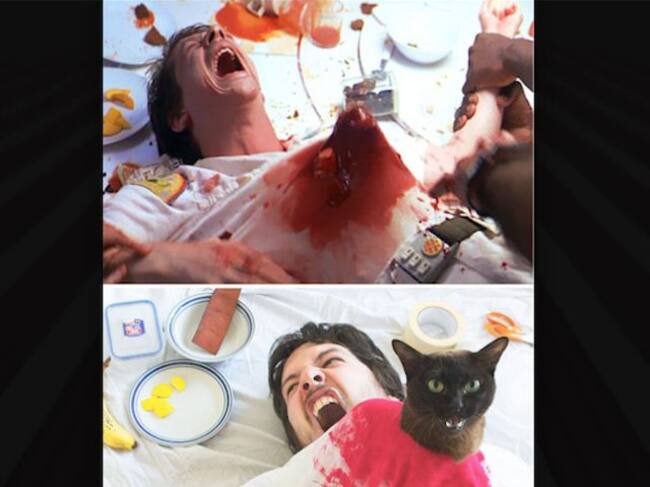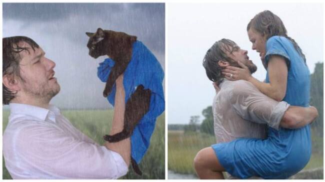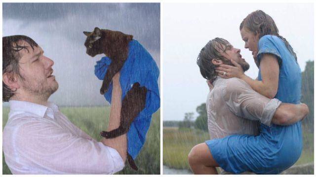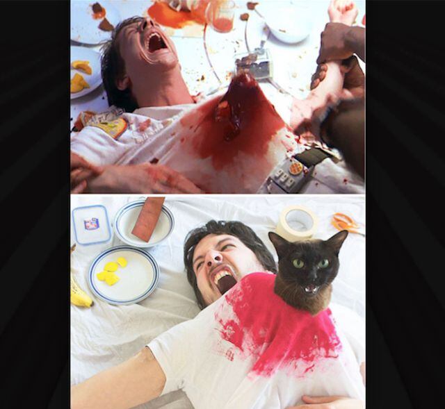 Él decidió recrear escenas de películas con su gato