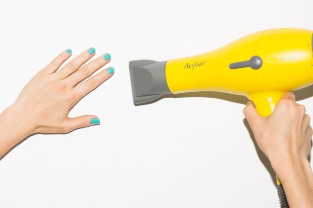 Tan fácil como usar tu secadora. A una distancia de aproximadamente 15 cm y con la temperatura más fría, seca tus uñas con la secadora. En unos minutos notarás los resultados.