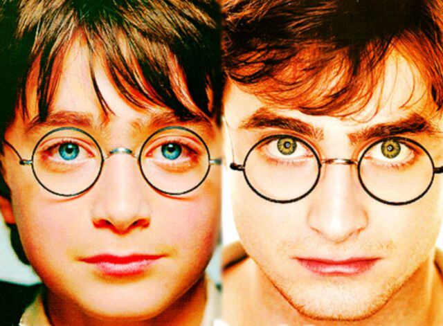 Existe una discordancia que a menudo ha sido resaltada por los numerosos fans de esta saga, aunque no tenga mucha trascendencia en el resultado final. Y es que en los libros se señala que Potter nació con los mismos ojos que su mamá, Lily, por lo que debería tenerlos verdosos. No obstante Daniel Radcliffe fue elegido como la mejor opción, aunque sus ojos presentan un tono azulado. Para el papel de su madre en la superproducción se buscó entonces una mujer con el color de iris como el del actor.