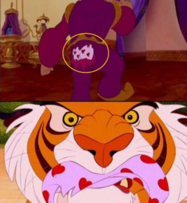 Incluso las películas animadas no se libran de encontrarse en esta lista. En este caso hablamos de la entrañable película de Disney, Aladdin. Es el momento en el que el pretendiente de Jazmine trata de convencerla y cortejarla, pero su compañero tigre la defiende y lo echa rápidamente mordiéndole en el trasero.