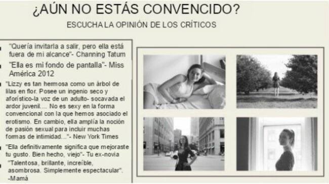 "Mi amor por él es muy grande, y sé que él está fuera de mi alcance. La fortuna le sonríe a los arriesgados, por eso mi proposición romántica fue tan atrevida", dijo Lizzy.