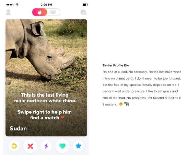 El último rinoceronte blanco busca pareja en Tinder