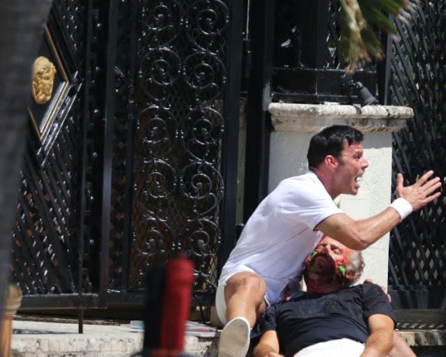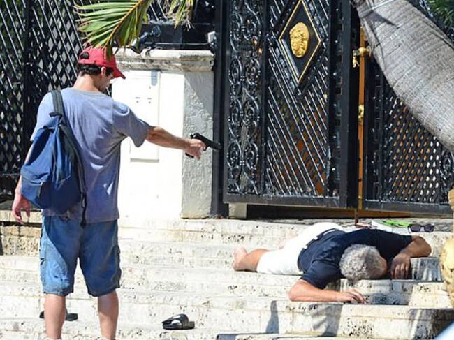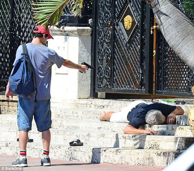En las imágenes podemos ver al puertorriqueño cargando al actor Edgar Ramírez mientras se rodaba la escena del homicidio. Sangre, llanto y drama se pueden observar en las fotografías.