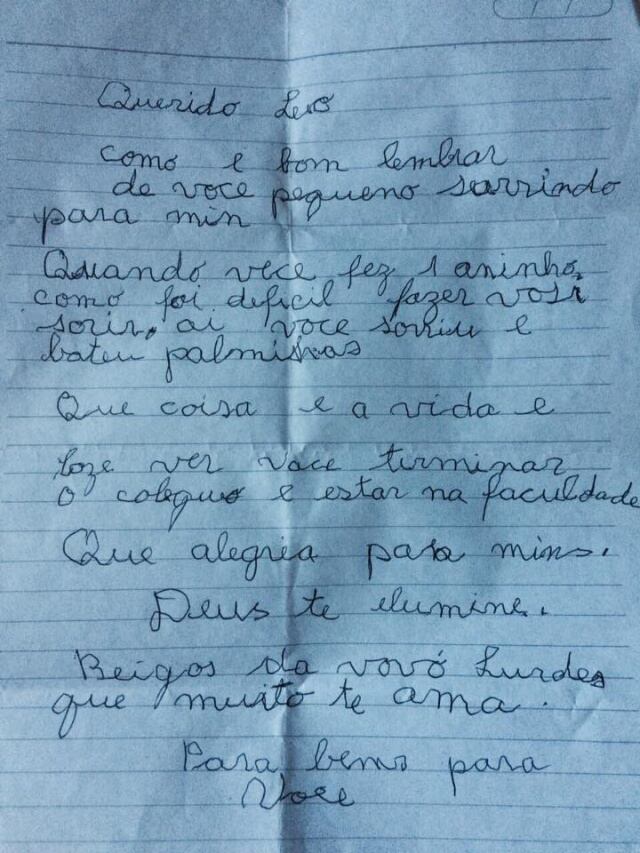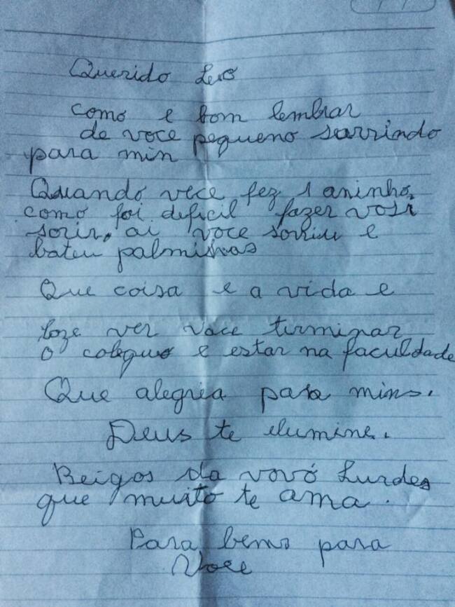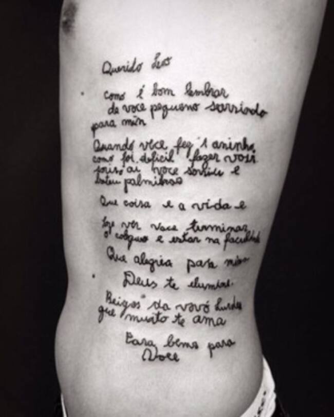 En Brasil, un chico de 19 años que ha vivido toda su vida con su abuela decidió tatuarse la carta que la señora de 85 años le escribió en su cumpleaños 18. Todo esto con razón de que la abuela de Leonardo Maritnis fue diagnosticada con Alzhéimer.