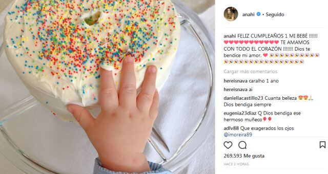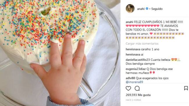 Con un par de fotografías y la leyenda "¡Feliz cumpleaños 1 mi bebé!" Te amamos con todo el corazón, Dios te bendice mi amor" la cantante compartió con sus seguidores este primer pastel del pequeño.