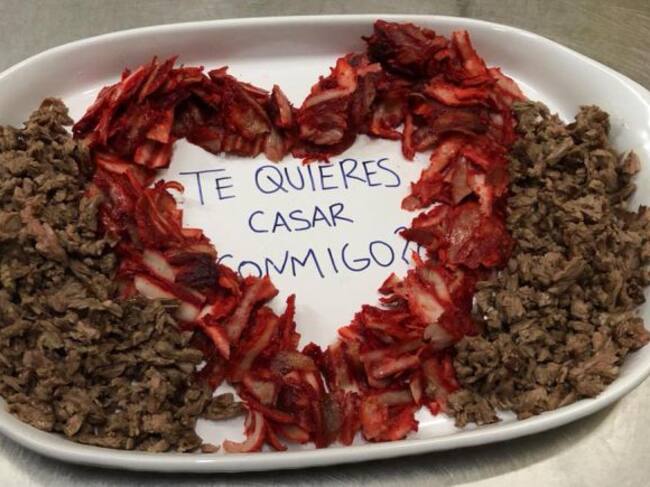Laura y Carlos fueron a cenar y hasta el momento de ordenar qué iban a comer, todo fue normal. Cuando recibieron su comida, él se puso de rodillas para pedirle que fuera su esposa.