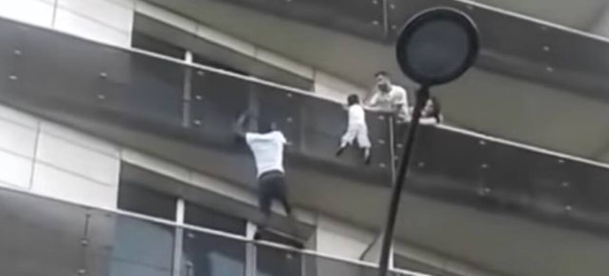 Le dicen el hombre araña y salvó a un niño de caer de un edificio de 20 pisos