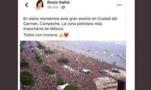 La candidata de Morena al senado de la Republica, Rocío Nahle difundió en sus redes sociales, una foto en la que presumía el grado de convocatoria que tiene su partido político en un mitin realizado para apoyar a Andrés Manuel López Obrador, en ciudad de Carmen Campeche.
