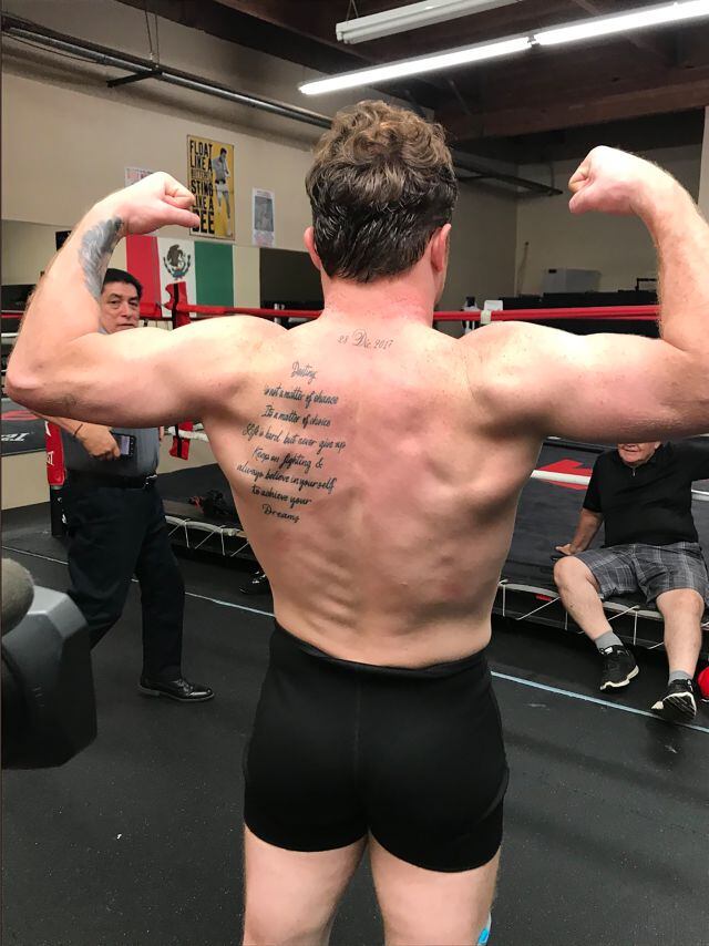 "Muy bonito el mensaje y muy cierto Canelo! Pero eso si pienso que pudiste haber hecho ese tatuaje en español y no en inglés. Pero si muy bonito mensaje".