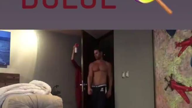 En el video publicado en la sección de "Historias" se puede ver cómo Angelique tomó una corneta de lata y lo asustó al entrar a la habitación.
