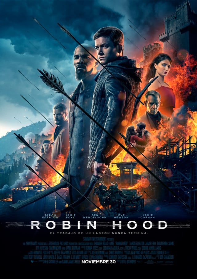 Taron Egerton, Jamie Dornan, Eve Hewson, Jamie Foxx y compañía llegarán a la pantalla a finales de noviembre en la película Robin Hood. La historia sigue a un soldado de las Cruzadas, endurecido por la guerra, y su comandante moro mientras organizan una audaz rebelión contra la corrupta corona inglesa en una emocionante aventura de acción llena de hazañas en el campo de batalla, una coreografía de lucha alucinante y un romance intemporal.