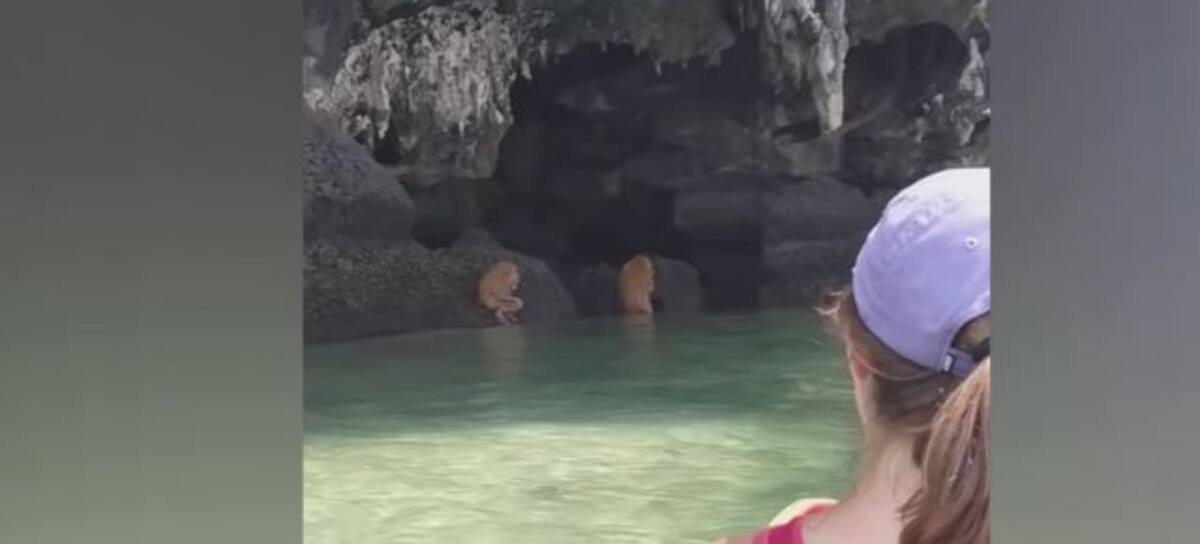 "Este fue el momento extraño en que los turistas se enfrentaron a una familia de "monos trolls parecidos a los ewoks" tocando música en una isla tailandesa. Las criaturas se vieron refugiadas debajo de las rocas en la bahía de Railay en Krabi, Tailandia, mientras los turistas pasmados pasaban en un bote y otros en kayaks. Un hipnótico "ritual cacofónico" era tocado a través del agua. Sin embargo, a pesar de su apariencia casi alienígena, los monos eran en realidad actores de performance y el sonido provenía de la vocalista itinerante Tori Wranes, que había protagonizado la extraña escena con el grupo de actores locales Thailand Biennale. Video: Jemayel Khawaja", dice la descripción del video que ya alcanzó cientos de miles de reproducciones.