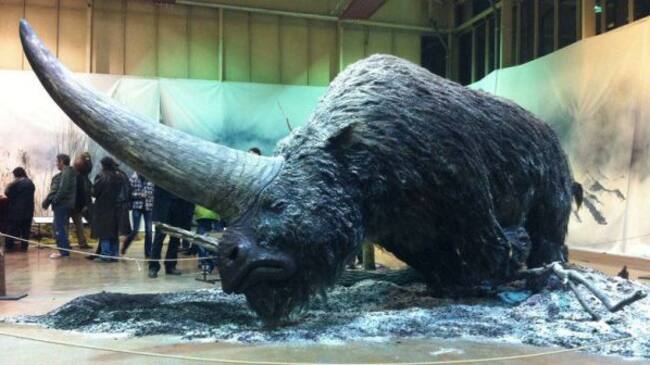 Su enorme cuerno estaba incrustado en la frente y gracias a las recientes investigaciones se descubrió que este rinoceronte sobrevivió a la Era del Hielo y se extinguió apenas hace unos 36 mil años. Es decir, ¡convivieron con humanos!