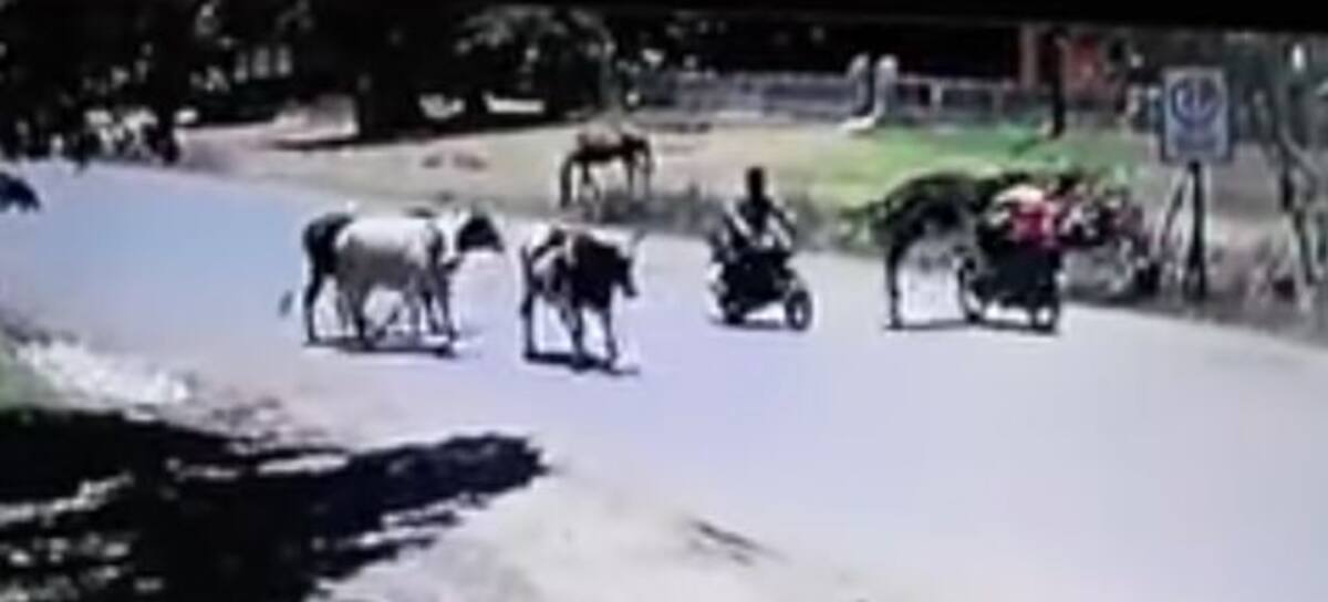 Vaca karateca derriba de una patada a motociclista
