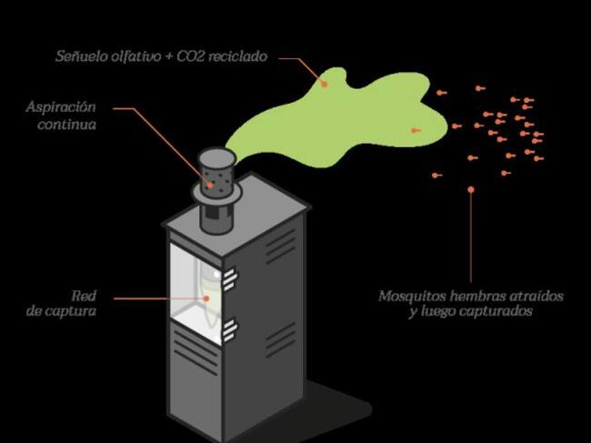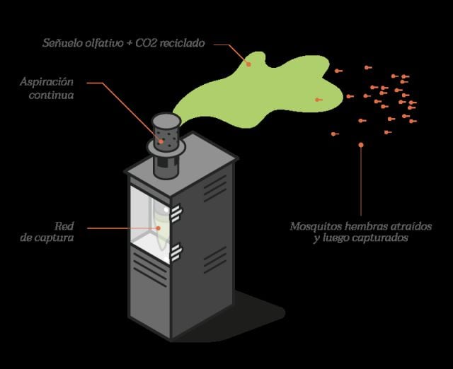 Funciona de la siguiente manera, debido a su tecnología patentada, la trampa anti-mosquitos atrae a los mosquitos hembras en busca de presas simulando la respiración humana con una pequeña cantidad de dióxido de carbono y un cóctel olfativo.