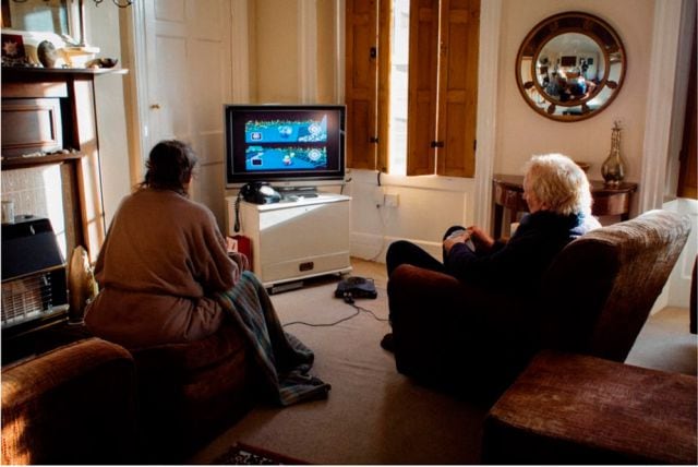 La imagen muestra a la pareja disfrutando del videojuego de Nintendo 64 que, curiosamente ellos mismos le regalaron a su hijo hace años. Hoy la usan para decidir quién prepara el té del día.