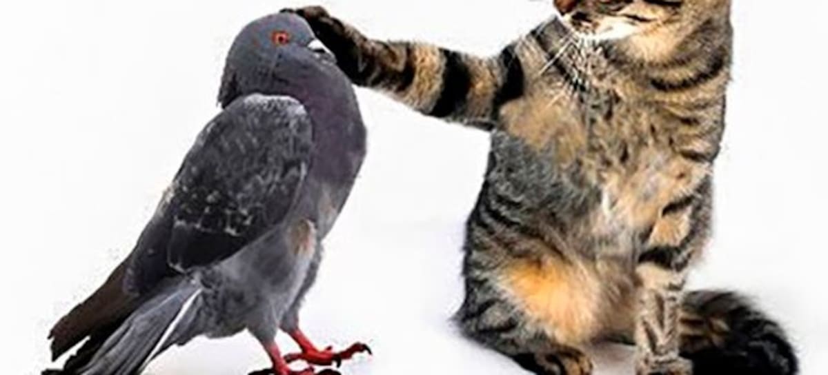 Viral pelea entre gato y paloma