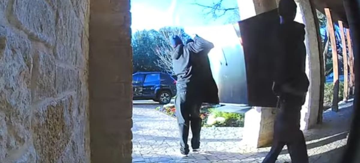 Un video de una cámara de seguridad de una casa muestra cómo este par de ladrones entraron dispuesto a robar una televisión que después regresaron a su casa. ¿Por qué? Porque no midieron bien y la tele no cabía en la cajuela.