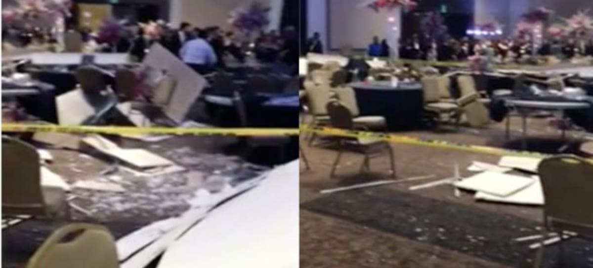 Una fracción de “falso techo” cayó sobre invitados y estudiantes de medicina, quienes celebraban el sábado su fiesta de graduación en El Centro Internacional de Negocios en la ciudad de Monterrey, Nuevo León.