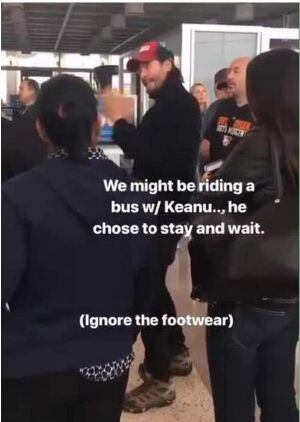 Aún después de organizar todas las cosas y de que todos se abordaran el bus para un viaje de dos horas hasta California, Keanu decidió entretener a sus compañeros de vuelo.