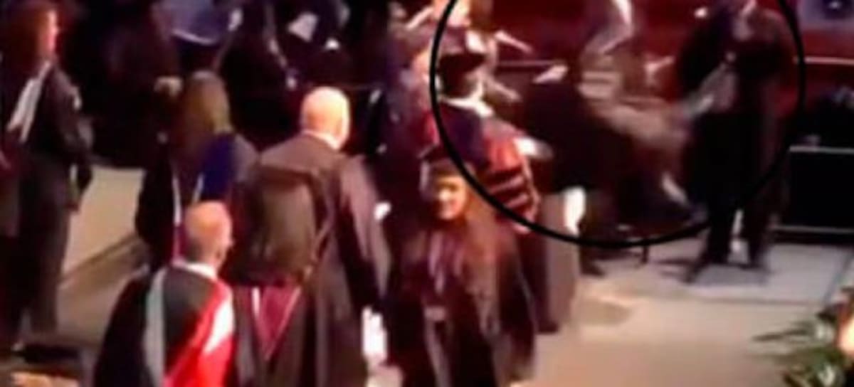 Quiso recibir su diploma haciendo un mortal hacia enfrente que no le salió muy bien