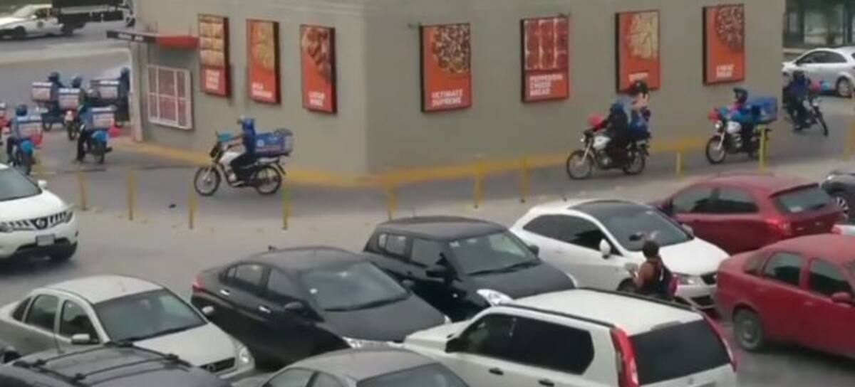 En redes sociales circula un video donde repartidores de Domino's Pizza llegaron en convoy a Little Caesar's para tocar el claxon y rodear el establecimiento de su competencia.