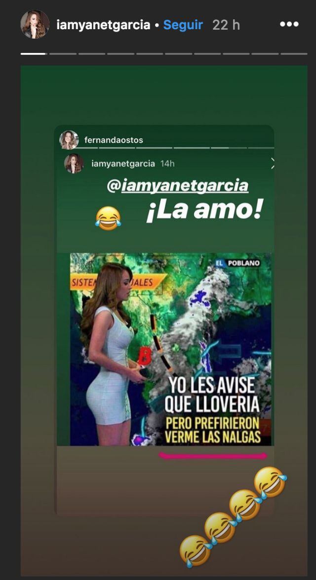 "Yo les avise que llovería pero prefirieron verme las nalgas dice la foto donde Yanet aparece dando el clima". Escribió Yanet en una historia temporal a través de Instagram.