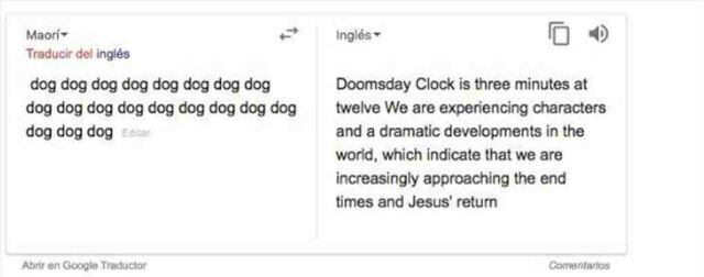 Un usuario de Reddit descubrió que es una “herramienta apocalíptica” que predice el fin del mundo, la situación fue que al parecer tenía mucho tiempo y se puso a escribir 19 veces la palabra dog (perro) y quiso traducirlo del Maorí al Inglés, lo que el resultado si fue de miedo.