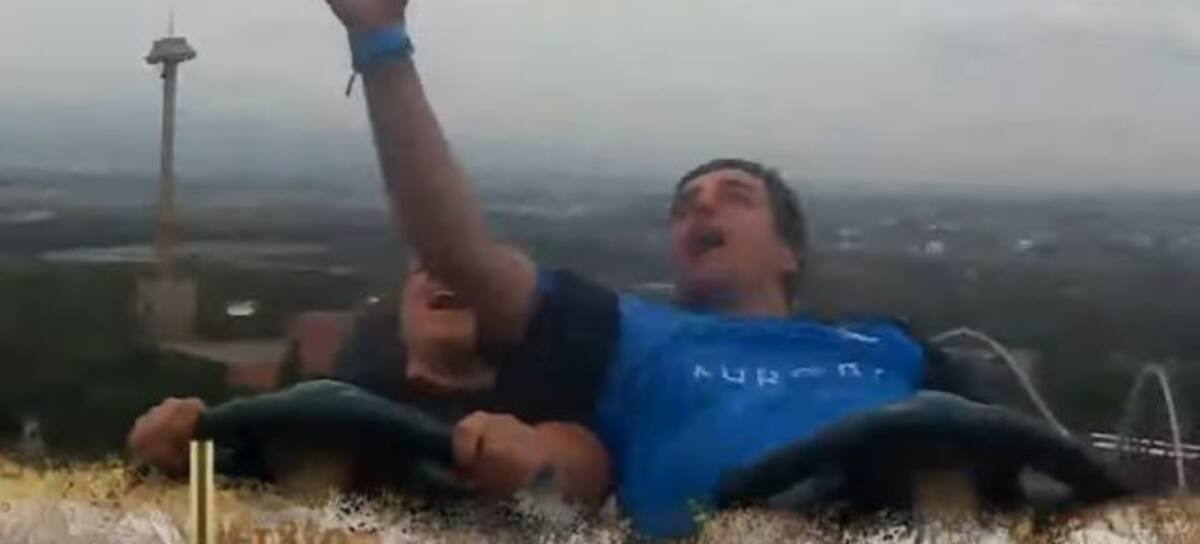 En redes sociales circula el video de un hombre llamado Samuel Kempf, jugador de faustball de Nueva Zelanda, que logró atrapar un celular que se le había salido del bolsillo a la persona que estaba adelante de él en una montaña rusa.
