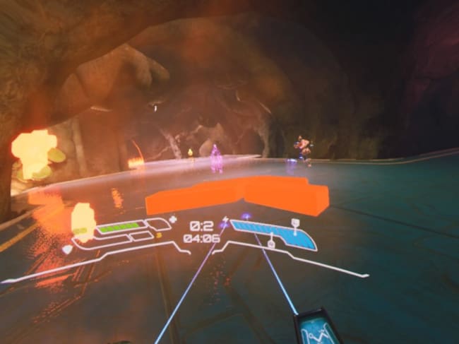 El objetivo es ganar dos de tres encuentros para coronarse campeón, el juego cuenta con cinco arenas que son muy divertidas, además los controles son precisos y responsivos y los movimientos como los derrapar o correr se realizan de manera fluida y permiten realizar el “frag”, un movimiento con el cual podemos apuntar hacia una superficie que nos permita transportar y aparecer justo en el mismo lugar donde se encuentra nuestro contrincante y hacerlo estallar en pedazos.