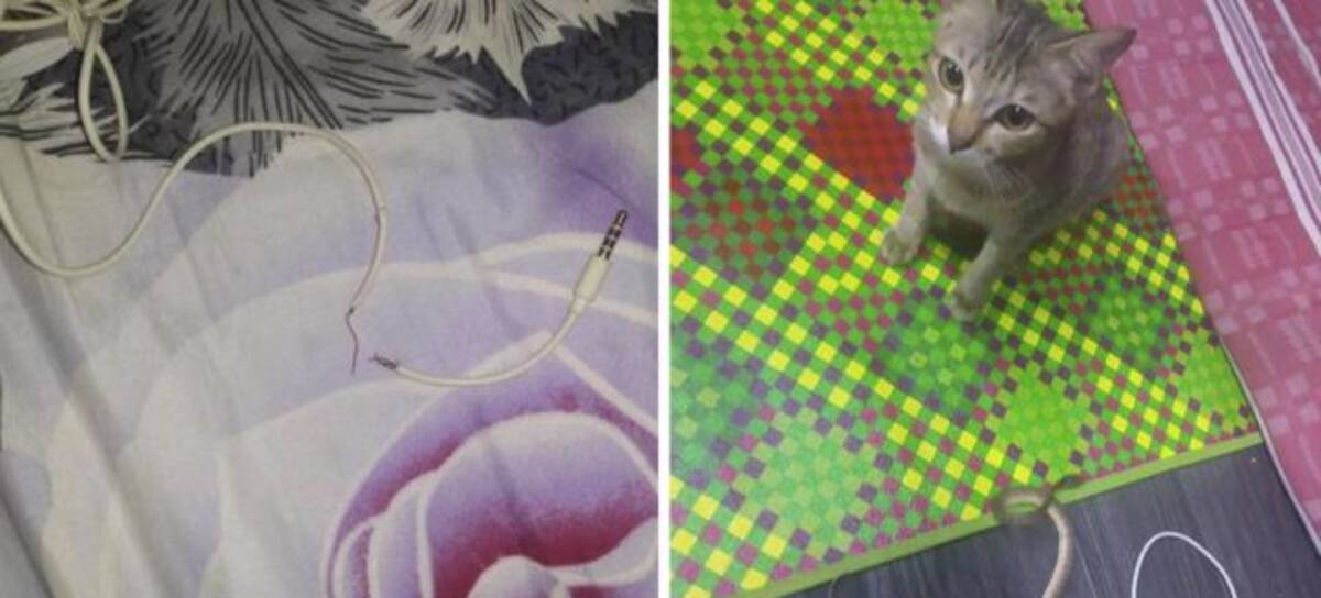 Gato rompe audífonos y los reemplaza con una serpiente