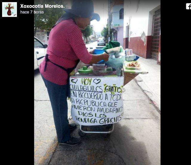 "Hoy chilaquiles GRATIS en recuerdo a toda la república que viniera a ayudarnos. Dios los bendiga", decía el mensaje que fue publicado por la página de Facebook Xoxocotla, Morelos.