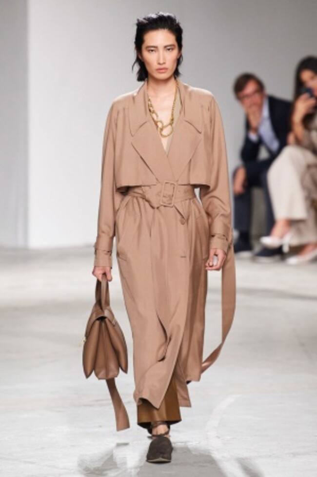 Gracias a Bottega Veneta y Tod’s la gabardina ligera y trench coast de cuero vuelven a estar en tendencia. El look también es combinado con pantalones debajo.