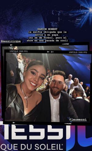 Danna Paola se toma una selfie con Messi durante la presentación del espectáculo en homenaje al futbolista "Messi10" de Cirque Du Soleil ¡No perdió oportunidad sin ser fan!