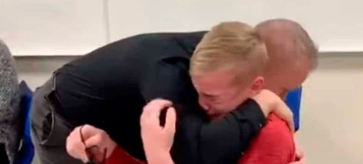 Jonathan se pone las gafas y se conmovió hasta las lagrimas al poder apreciar, al ser cuestionado sobre qué opinaba solo levantó los pulgares en señal de "ok", ante esto el profesor solo le dio un gran abrazo.
