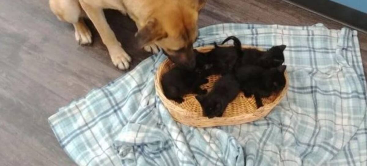 Perrita cuidaba a cinco gatitos de no morir en el frío
