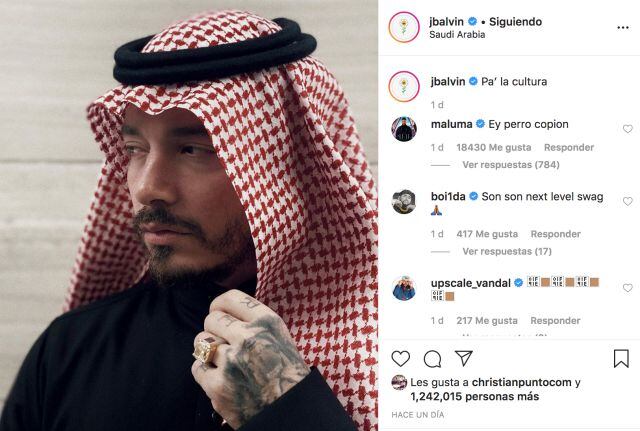 J Balvin visitó Arabia Saudita y compartió algunos momentos en su cuenta de Instagram, una de las fotografías que compartió es muy similar a una publicada anteriormente por Maluma.