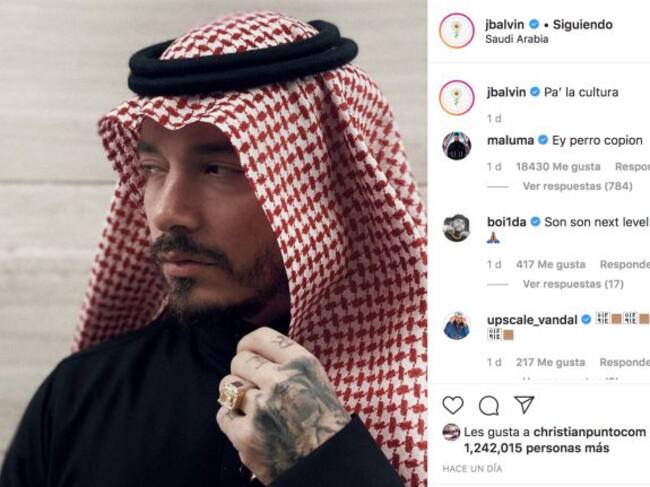 J Balvin visitó Arabia Saudita y compartió algunos momentos en su cuenta de Instagram, una de las fotografías que compartió es muy similar a una publicada anteriormente por Maluma.
