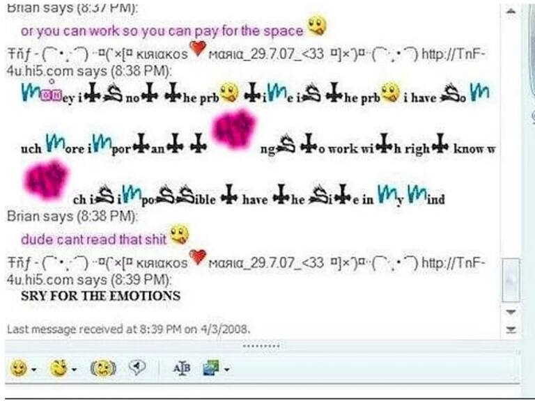 Con esto demostrabas tu estado de ánimo. Si tu amigo no te contestaba, le mandabas esto para que reaccionara. En una de esas había dejado la compu prendida y se fue al baño, por eso no contestaba los mensajes.