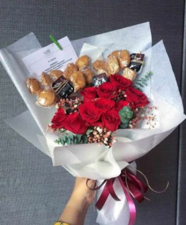 Dulces, flores, bombones, peluches, chocolates y mil cosas más son algunas de nuestras opciones para tener un detalle con ese ser que nos mueve el piso, pero ¿Qué tal un ramo de nuggets de pollo?