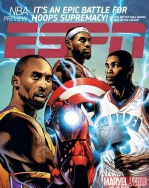 En ese mismo año, previo a el inicio de la temporada 2010 se realizó una ilustración grafica en donde Kobe Bryant aparecía junto a Lebron James y Kevin Durant, portando el guante de Iron Man, el escudo del Capitán América y el maso de Thor respectivamente, al mas puro estilo de un comic de Marvel.