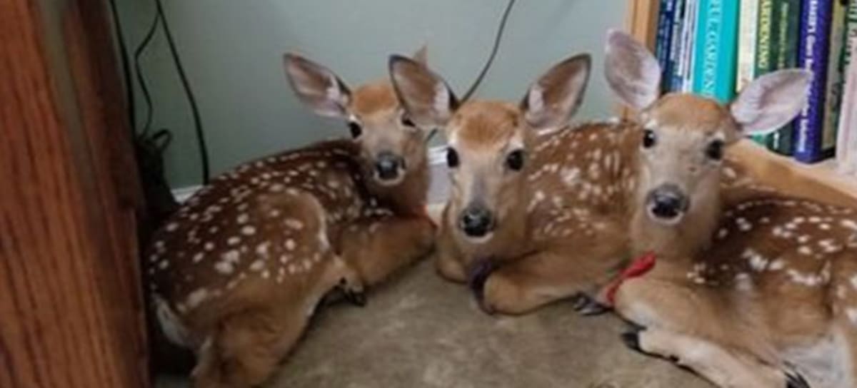 Mujer resguarda en su casa a 3 pequeños ciervos durante horrible tormenta