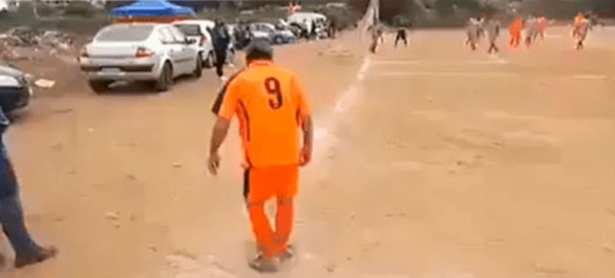 El espectacular hecho quedó captado en video, en donde el hombre toma el balón con seguridad y se dispone a mandarlo en servicio de esquina a sus compañeros de equipo.