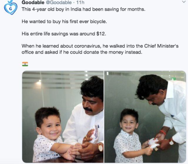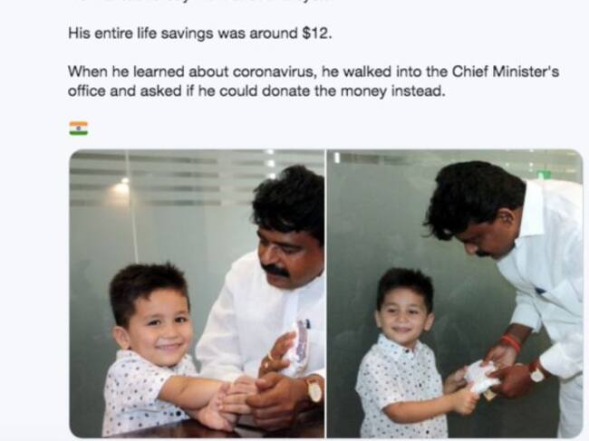 Niño de 4 años donó sus ahorros para ayudar a combatir el Coronavirus