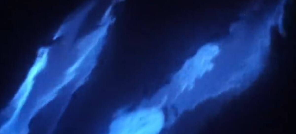 Un video captado por el fotógrafo Patrick Coyne muestra a delfines nadando alrededor de una lancha mientras el mar brilla por el efecto bioluminiscente. El espectáculo se vuelve casi mágico al ver cómo en medio de la noche los delfines brillan y se pintan de neón mientras se sumergen y salen a la superficie.